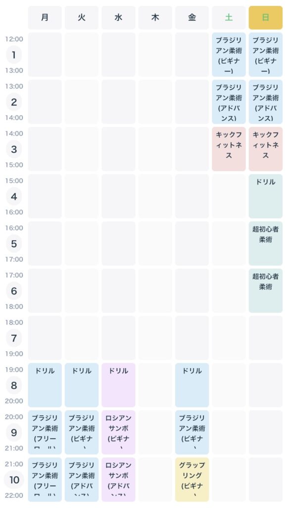 2026年から新規スケジュールが適用され、「超初心者柔術クラス」が新設されました。